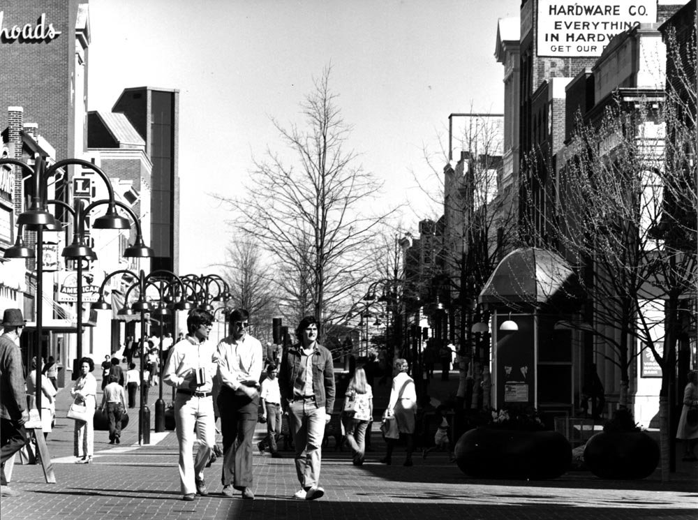 The Charlottesville Downtown Mall is one of the most popular places in town for students and locals to eat, shop and play. But it hasn’t always been that way. A controversial “urban renewal” project in the 1960s razed nearby Vinegar Hill, a center of African-American life in Charlottesville. Many buildings along Main Street were in disrepair, and downtown businesses were dying off as suburbs sprouted and commerce grew along U.S. 29 North.