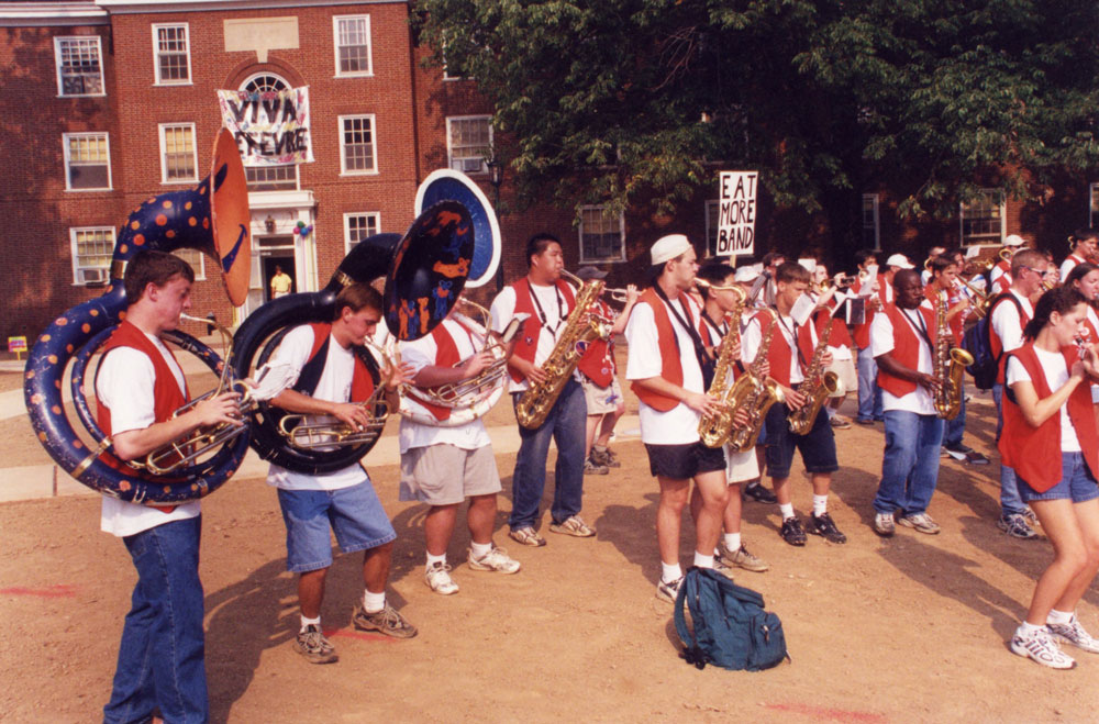 “The band did get into a self-radicalization spirit, no doubt about it,” says Evan Macbeth (Col class of ’97). After the Pep Band “killed” Elvis in front of outraged Tennessee fans at the 1991 Sugar Bowl, Virginia State Del. Bob Tata (Educ class of ’54, class of ’67), a Republican from Virginia Beach, drafted a resolution calling for the General Assembly to ban it from performing. In response, the administration cut four games from the band’s schedule for the upcoming season.