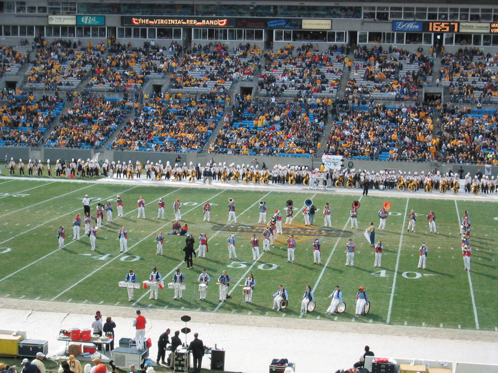 Just before halftime of a 48-22 Cavalier win, the Virginia Pep Band had made its way down through the stands for its on-field performance, its roughly 100 members conspicuously clad in white pants, blue shirts and orange vests, toting their instruments. At the sight of them, the Mountaineer faithful reflexively began booing.