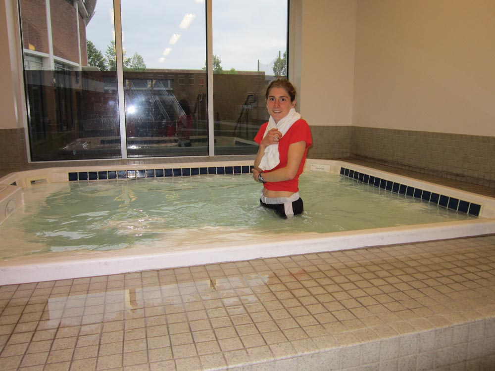 After long runs (13 miles or so) and intense races, an ice bath helps flush lactic acid—which causes soreness and inflammation in muscles—to soothe Corrigan’s feet and legs.