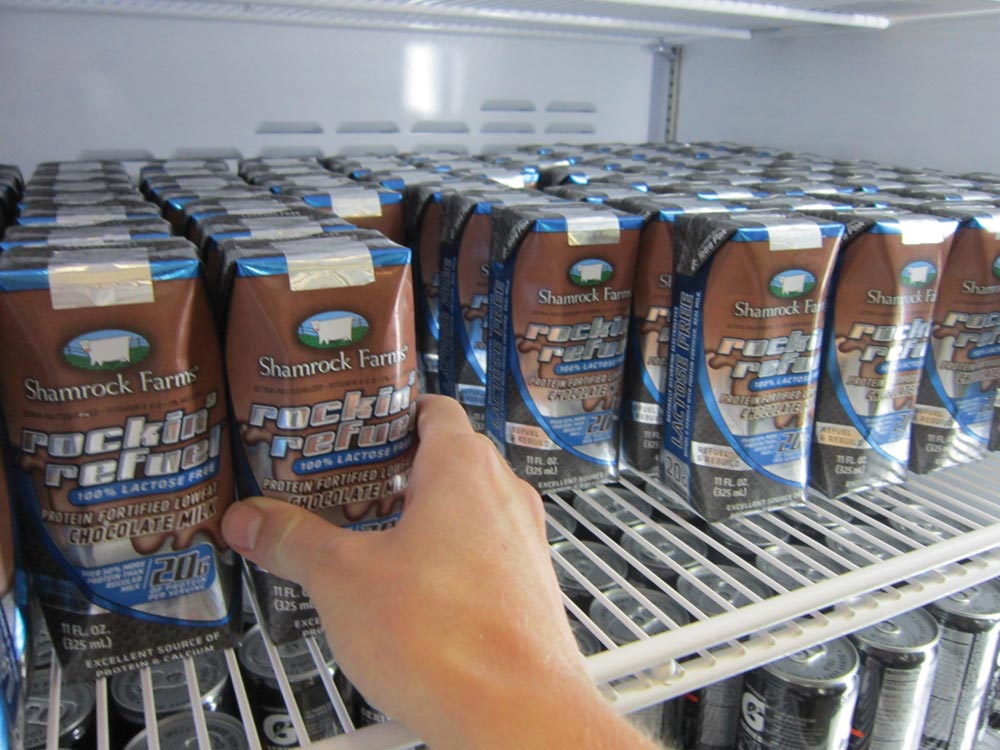A protein shake is standard fare after a post-practice weight-lifting workout. “Most protein shakes taste awful,” she says, “but this one is like delicious, protein-fortified chocolate milk.”