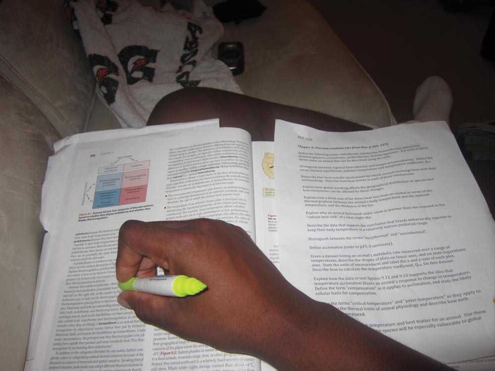 A third-year biology major, Hill reads up on animal physiology. “Biology has always been a passion of mine,” he says. He plans either to go to med school or go into kinesiology when his time playing football comes to an end.