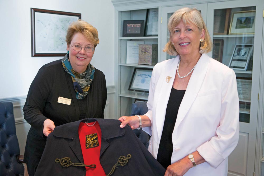 UVA President Teresa Sullivan recently gave her late mother’s nursing cape to the UVA School of Nursing’s Eleanor Crowder Bjoring Center for Nursing Historical Inquiry. The center, one of just a few such archives around the world, is the repository of thousands of personal effects, documents and other pieces of nursing memorabilia, as well as a growing digital archive of nurses’ stories. Sullivan’s mother, Mary Elizabeth Finnegan, enlisted in the Army Nurse Corps at age 25, shortly after the bombing of Pearl Harbor, and began a whirlwind of travel, service and nursing “under live fire” in the European theater in World War II.