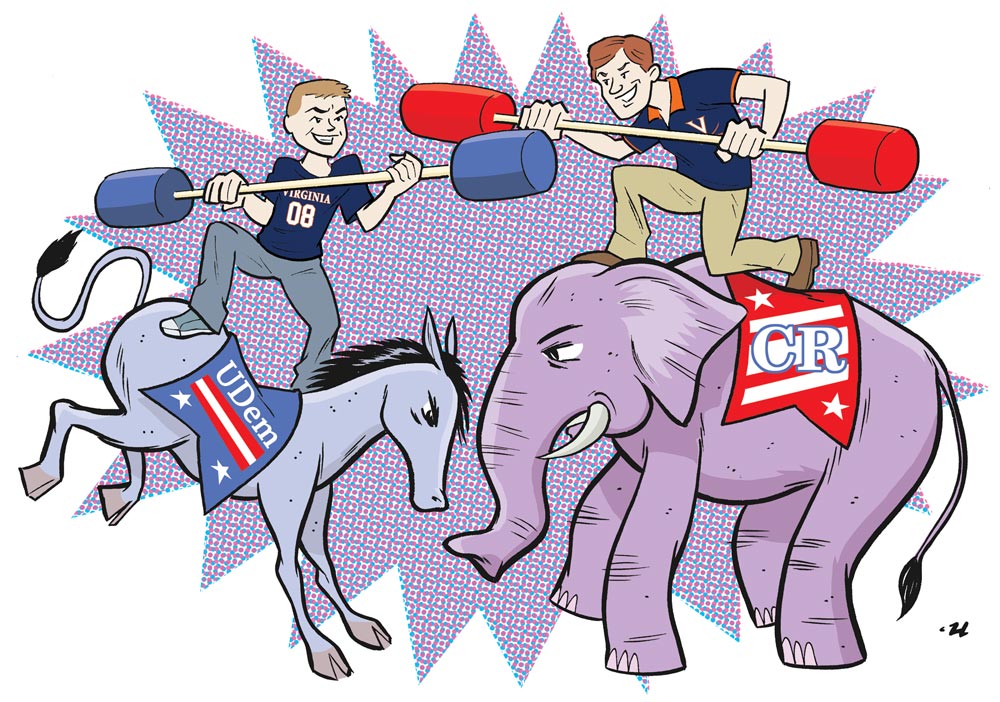According to UVA’s Office of Institutional Research, 28 percent of UVA students describe themselves as conservative; 35 percent as liberal; and 37 percent as “middle of the road,” leaving a fair amount of undecided voters to cajole. By Martin’s account, College Republicans are more diverse than ever, split equally between men and women, with a broad range of viewpoints. He hopes it’s a place where moderates, libertarians and independents can feel comfortable.