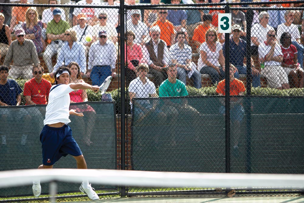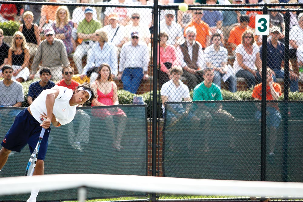 Fourth-year Somdev Devvarman, ranked No. 1 in the nation and the NCAA defending singles champion, led UVA to an undefeated regular season and the ACC Tournament title. The Cavaliers’ stellar play attracted record crowds to Snyder Tennis Center (pictured), and UVA fans led the nation in attendance at men’s tennis matches.