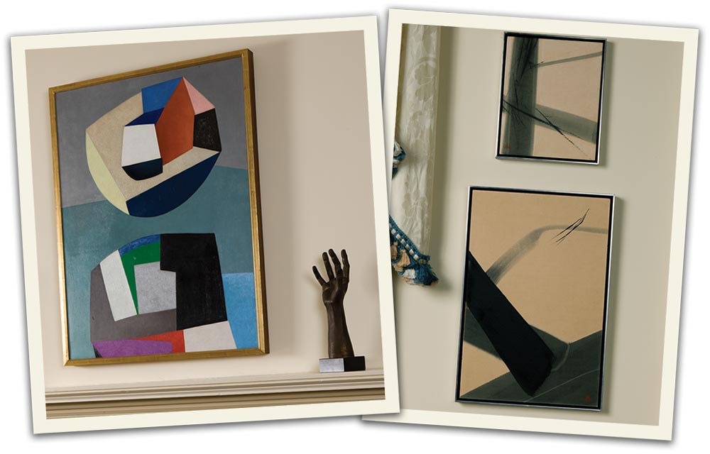Inside, Harding has supplied his own exotic touch. Most prominent is his collection of Asian art, many of the works by Toko Shinoda, a Japanese contemporary female artist. Harding inherited the sizable collection from his father, who began acquiring her paintings in the 1960s. Antique travel posters are also on display.
