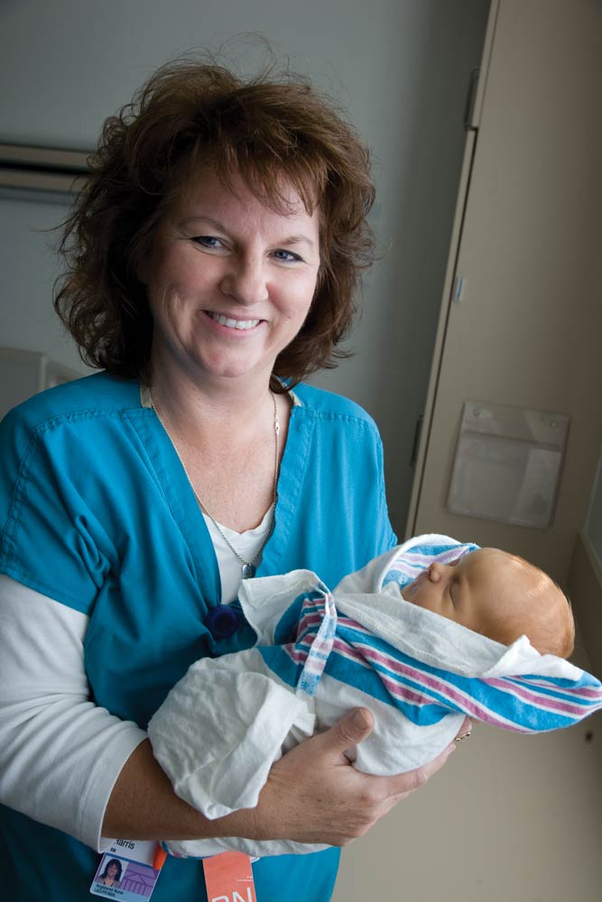 The department store may have to do without Harris, as she seems to be a born nurse. “My mom, dad, two sisters and my brother have all worked at the hospital at some point. I started volunteering here when I was 14 years old as a candy striper,” she says. “It’s all I’ve ever wanted to do.”