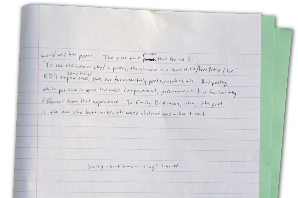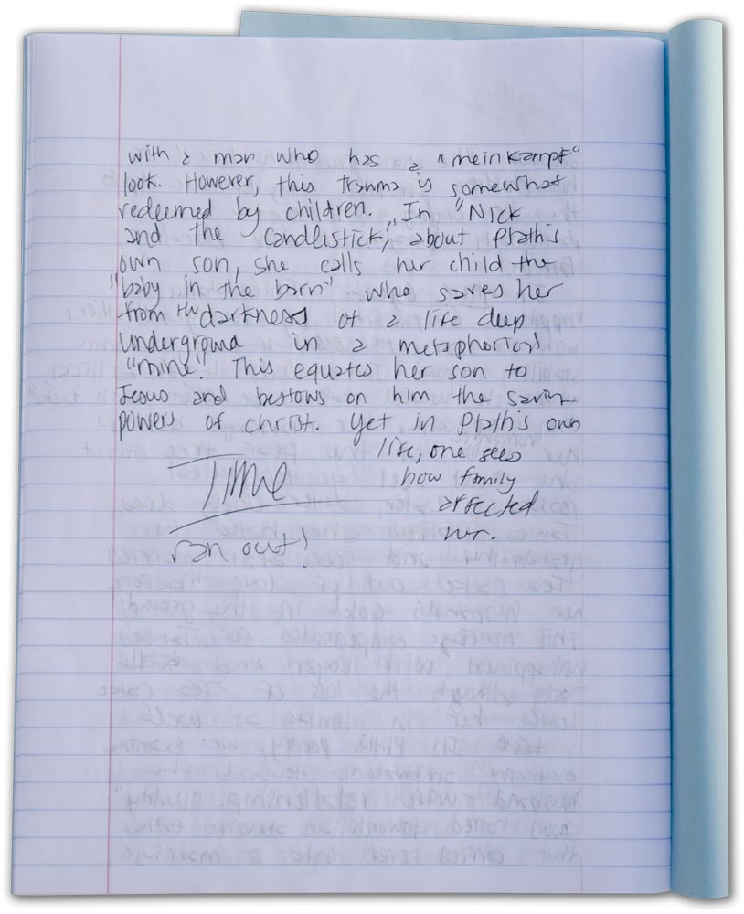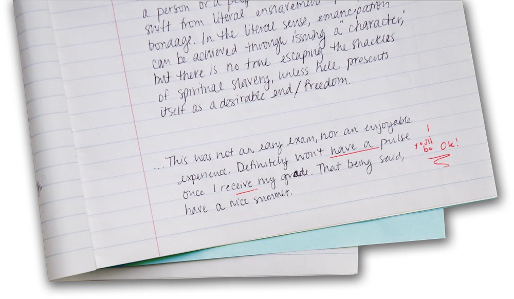 For many former students, the sight of a blue (or green) examination book might cause stomachs to churn and bring back memories of frantic essay writing and cramped hands. With the permission of some good-natured UVA students and faculty, we’ve captured moments from final exams, from an an essay spilling over to the back cover to an exhausted parting note to a professor.