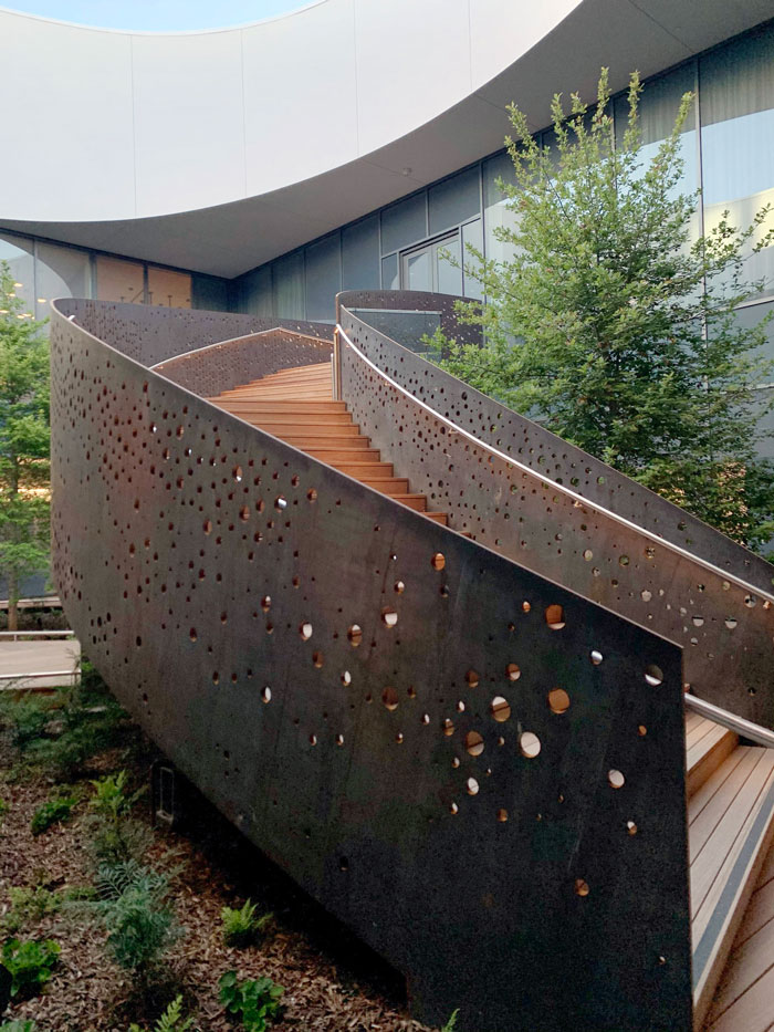 The design is also mindful of the site’s trees. Galleries were woven around the existing root bases so trees weren’t damaged, Gupta says. Visitors to the museum, which opened this summer, are often perplexed, wondering if the building is actually new because the trees are so mature. To Gupta, that spells success.