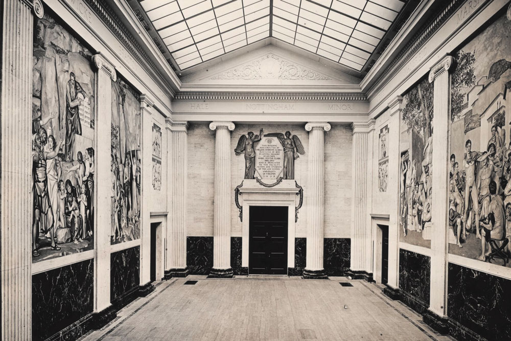 33 After a years-long lobbying effort by UVA’s first president, Edwin Alderman, to build a dining hall to boost fellowship opportunities on Grounds, Garrett Hall opens to serve both students and faculty. First called the Refectory and then The Commons, the building replaces a mess hall on Carr’s Hill and would undergo updates in 1959, 1983 and 2011. It’s now home to UVA’s Batten School.