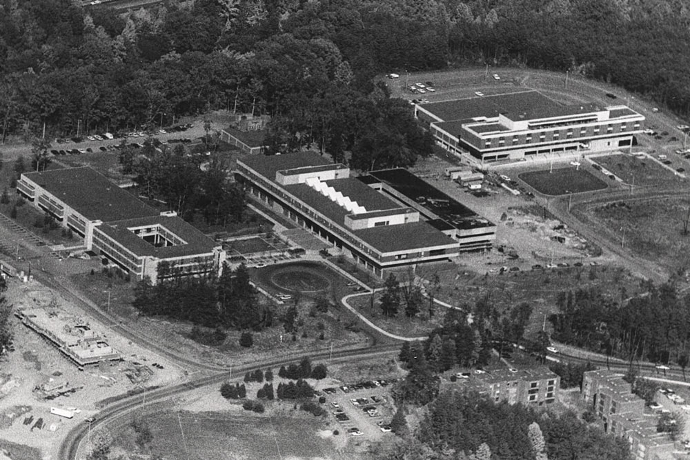 70 North Grounds takes shape. UVA’s law school moves from Clark Hall to its new building, eventually named Henry Malcolm Withers Hall, now Brown Hall, in 1974. Darden, which had been in Monroe Hall, and the Judge Advocate General School follow to North Grounds in 1975. In the 1990s North Grounds undergoes another series of moves. The Darden campus is built in 1992. The David A. Harrison III Law Grounds opens in 1997.