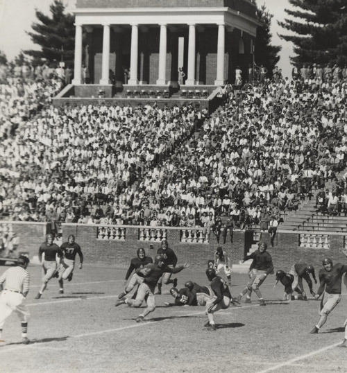 43 Scott Stadium, among the oldest college football stadiums in the United States, opens and is dedicated during the Oct. 15, 1931, game against Virginia Military Institute. It replaces Lambeth Field. The stadium has undergone numerous updates since then. Once designed for 22,000, it can now hold more than 60,000.