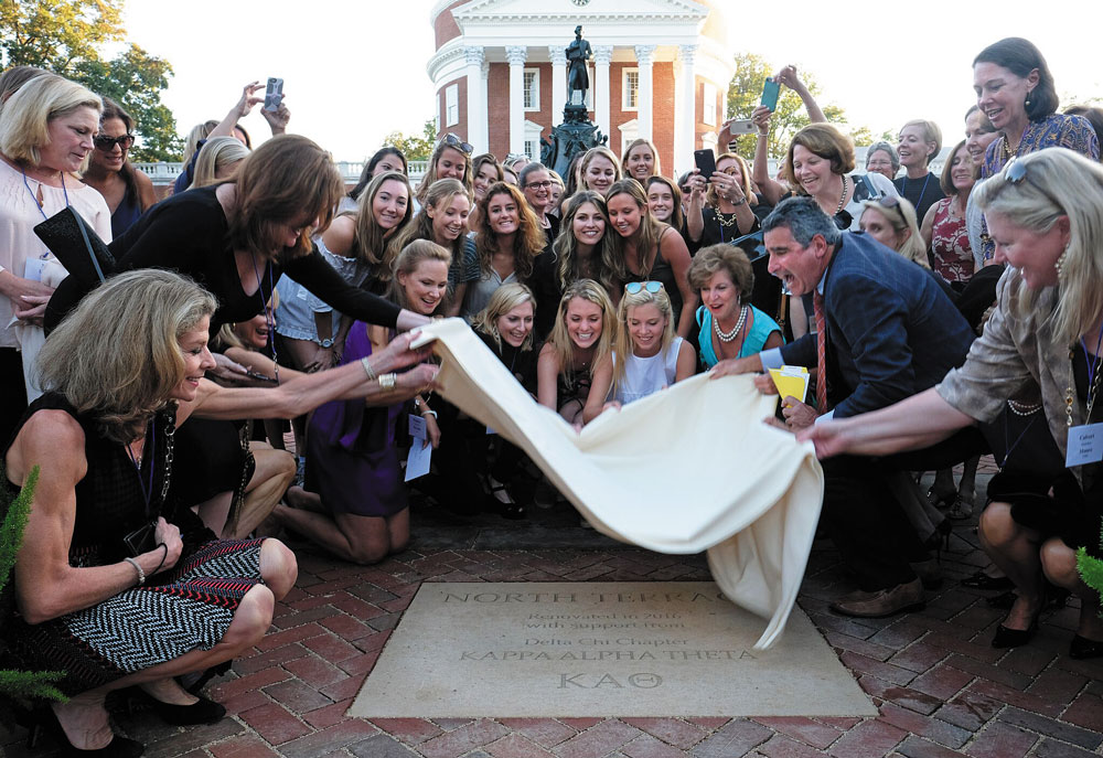 Alumnae of the local Kappa Alpha Theta chapter, 213 of them, raised more than $1 million to restore the Rotunda’s North Terrace. The campaign, timed with the chapter’s 40th anniversary, culminated in the dedication of a plaque on the North Terrace last fall. The fundraising set the record for largest gift by a Greek organization to UVA, and it brought the Theta-affiliated total of Rotunda giving close to $3 million. “The Rotunda is at the heart of the University,” says Whitney Andrews Murphy (Col class of ’87), who along with Merry Walker Dougherty (Col class of ’90) spearheaded the effort for Kappa Alpha Theta members to join the donors who have committed $100,000 or more to the Rotunda project.