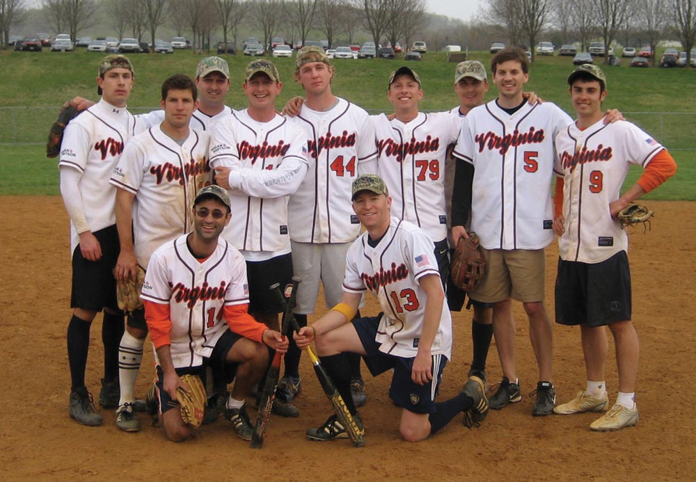 The tournament’s organizing body, the North Grounds Softball League, has a long and storied history. The league was founded in 1976 by classmates J. Gordon Hylton (Law class of ’77) and Fred Vogel (Law class of ’77), who were looking for a higher level of competition than what was available in the existing UVA intramural leagues. The team rosters in those early days featured many notable alumni from the Law School’s Class of 1977, including future New York Times crossword puzzle editor Will Shortz, future Sen. George Allen, future D.C. U.S. Attorney Roscoe Howard, and future National Hockey League vice-president Skip Prince. In the fall 1977 season, the late Major League Baseball Commissioner Bowie Kuhn (Law class of ’50) returned to Grounds to pitch in a league game.