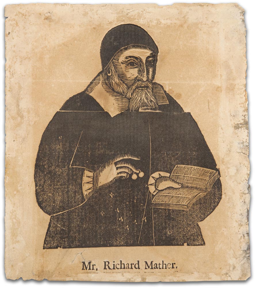 Richard Mather, arriving in Boston in 1635, founded the Mather family dynasty of New England Puritan ministers. This woodcut portrait of Mather, created after his death in 1669, is the earliest known American woodcut and portrait print, and one of only five known examples. The artist was John Foster, a graduate of Harvard and Boston’s first printer. The McGregor Library contains one of the world’s most comprehensive collections of books and manuscripts written by Richard Mather, his son Increase Mather, and grandson Cotton Mather.