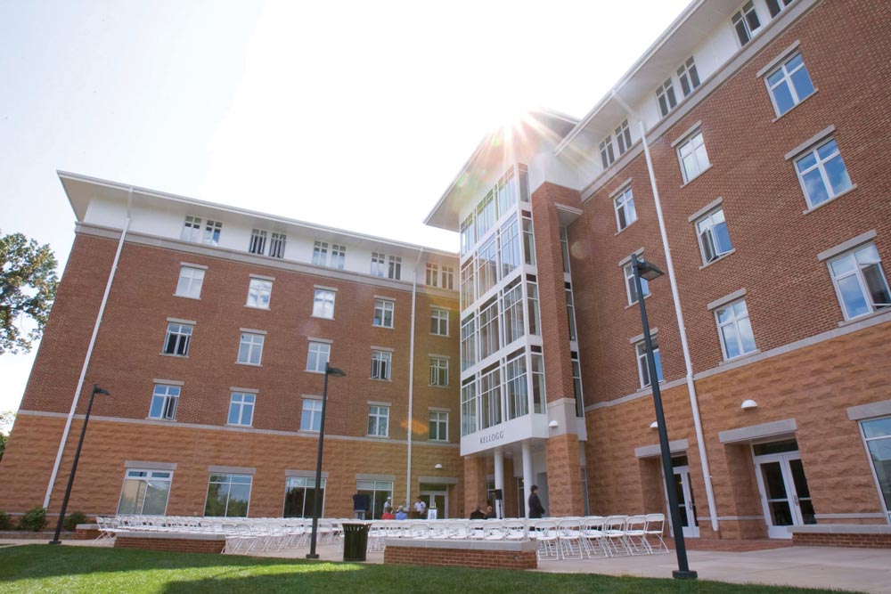 Residents call it “the O-Hilton.” It’s still dormitory-style housing, but given its many amenities and commanding views of Grounds, the new $18.8 million Kellogg House feels more like a hotel, according to its denizens.