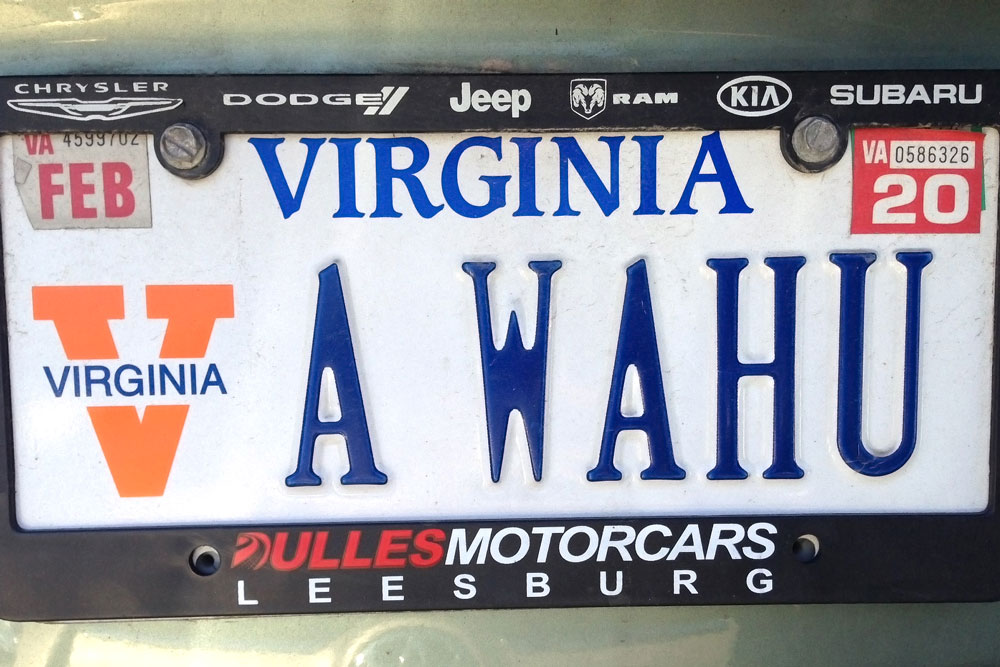 Take a peek at the collection below (including a few anonymous ones from the DMV). And if your ride has ’Hoo plates, take a photo and share on our Facebook page or tag #UVAMagazine on Twitter.