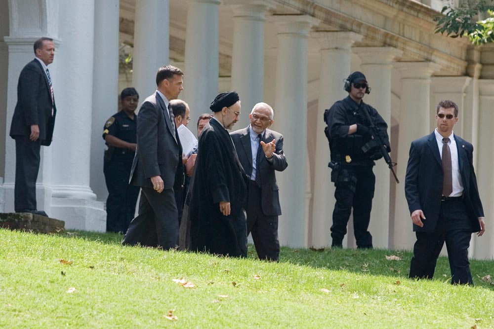 Under tight security, former Iranian President Mohammad Khatami, the first high-ranking Iranian official to visit the United States in 30 years, delivered remarks at the Rotunda on Sept. 7.