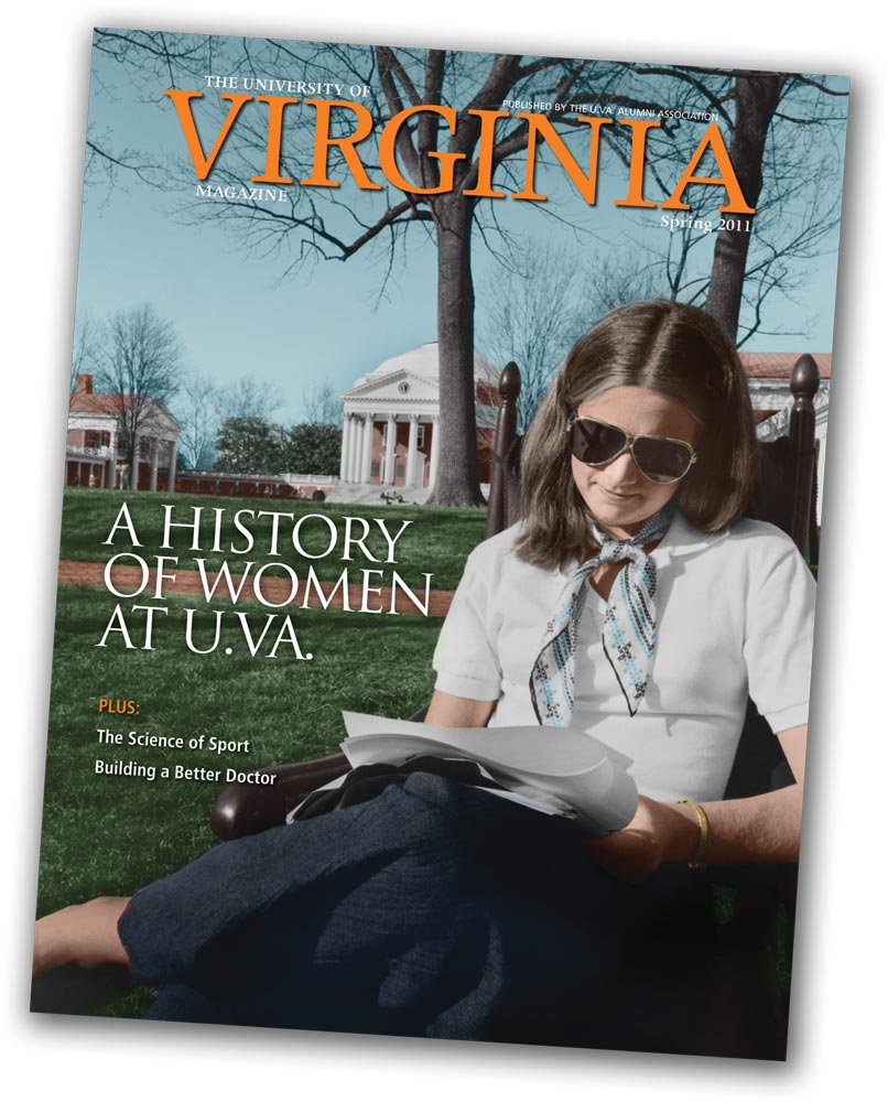 When I received the Virginia Magazine Spring 2011 issue, I felt I knew the coed on the cover. Who is she? She looks like a girl I grew up with in Wilmington, Del., and she went to UVA in the fall of 1972 and graduated in 1976. I went to UVA in 1976 for graduate school and saw my friend when she returned to campus for a visit. I also thought my friend’s class of 1976 was the first class of females on campus, but according to your article I was mistaken. My friend, Karen Beck, passed away in 2002 from cancer, and if this is her in the picture, what a great tribute.