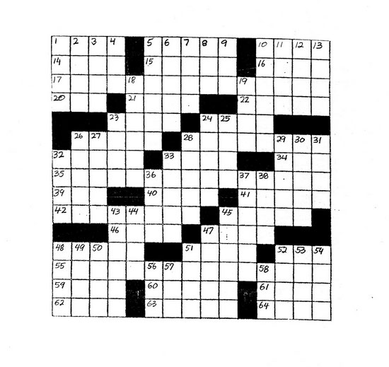 I really enjoyed Mr. Ezersky’s brilliant crossword puzzle [“Puzzle Master,” Fall 2014]. I have constructed crosswords for the New York Times, Games magazine and a number of other places. I’m hoping your readers will enjoy the enclosed puzzle. The long entries symmetrically at 17, 28, 35, 42 and 55 across have a literary flavor and relate to the University.