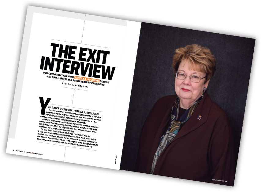 Thank you for capturing the essence of Teresa Sullivan’s tenure and thoughts in an honest and sincere way. I am grateful for your time and dedication to keeping those of us removed from the University informed. Much respect for the reporting and writing. Keep up the great work!