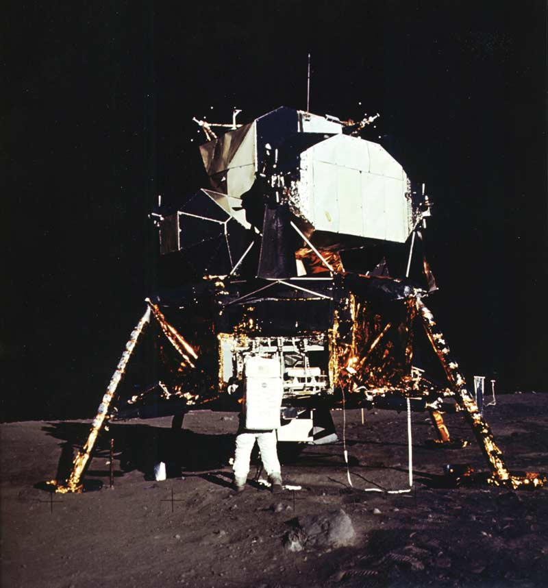 Answer: The stars are there, but are too faint to be seen. “It has nothing to do with the sky being black or the lack of air, it’s just a matter of exposure time,” Plait explains. Because the lunar landscape is brightly lit by the sun, the film exposure times had to be short—and stars do not produce enough light to show up during a quick exposure.