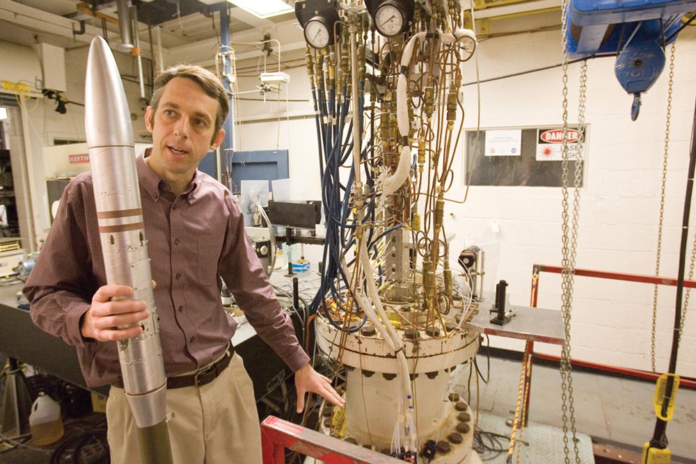 Christopher Goyne, director of UVA’s Aerospace Research Laboratory and principal investigator on the project, says the program offers an unusual blend of basic research and undergraduate and graduate education in high-speed propulsion. “The key to maintaining competitiveness within the international aerospace market is a well-educated aerospace workforce,” says Goyne. “Surveys indicate that 27 percent of current aerospace workers will retire by 2008 and that 66 percent of aerospace and defense executives report a shortage of skilled workers.”