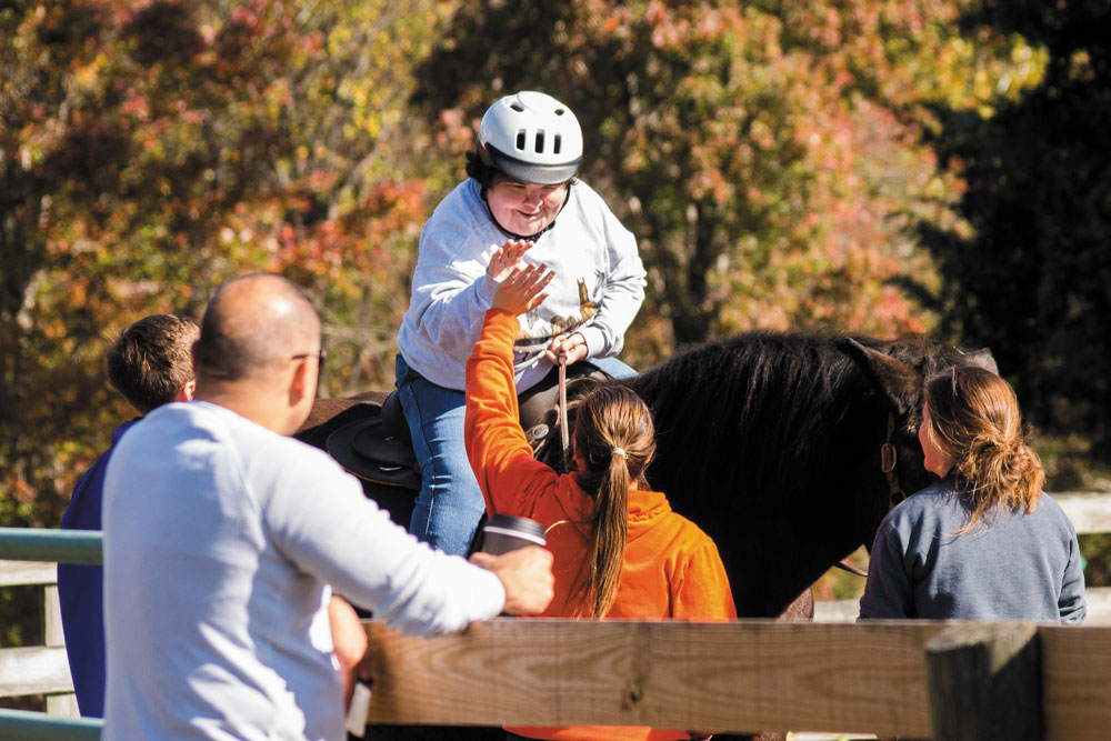 The horse trots, the volunteers run—one in front, one on each side—and Jasmine beams from the saddle. Davies is smiling too. She connected with the riding therapy program in 2016 through Madison House, UVA’s student volunteer center, and is now a program director there. Celebrating its 50th anniversary in the 2019-2020 academic year, Madison House partners with more than 100 local schools, medical facilities and nonprofits, coordinating volunteers while also teaching students about leadership and giving back.