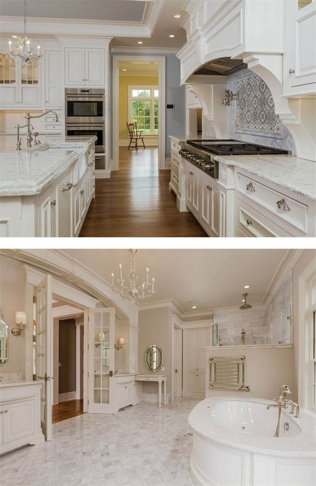 And while Jefferson’s house is roughly 11,000 square feet, Blake’s is a streamlined 10,000 square feet with modern amenities like geothermal heating and three helicopter landing sites on the property. There are also small touches to adhere to local ordinances, like railings on the front door entryway.