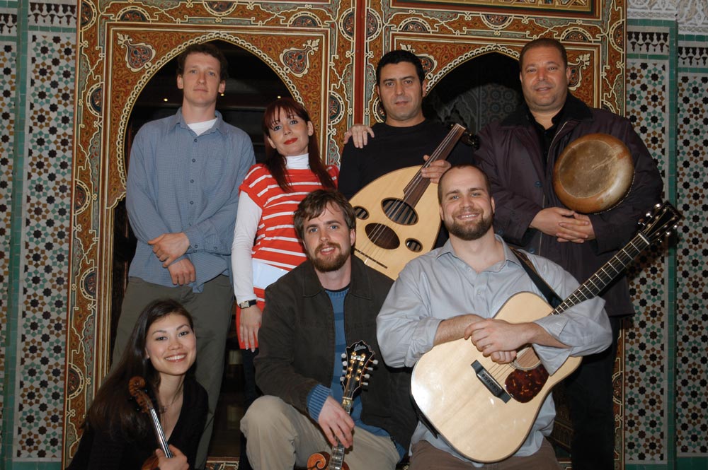 Gilmore, a guitar-mandolin-banjo player raised on bluegrass, was stationed in Tunis with the U.S. State Department in 2005 when he met Riadh Fehri, a Tunisian musician who plays the oud. Soon thereafter, Gilmore recruited friends Zack Blatter (Col class of ’01), Anne Marie Calhoun (Col class of ’01) and Brian Calhoun to join the ensemble, while Fehri contacted some of his North African compatriots, vocalist Amel Boukchina and renowned percussionist Lassaad Hosni.