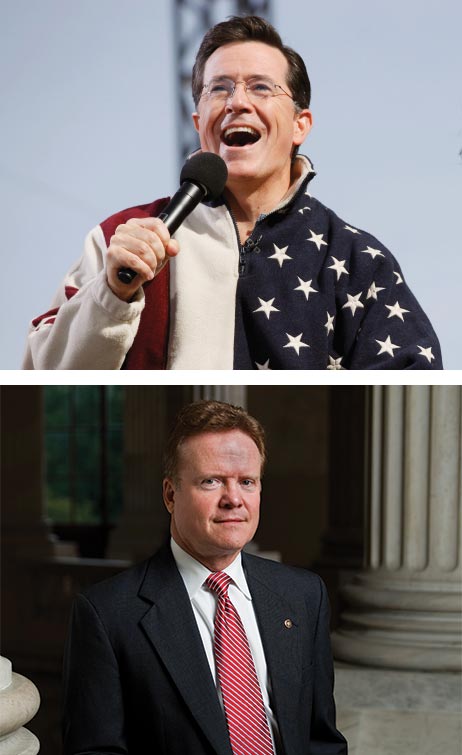 Stephen Colbert (top) and Jim Webb (bottom)
