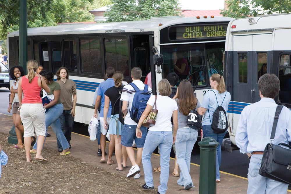 Starting in January, riders of University Transit Service buses will benefit from the latest Global Positioning System technology. Passengers can access real-time schedule information on a Web site and through the system’s “BusFinders”—touch-screen displays installed at 20 of the most popular UTS stops. The system was purchased with the help of a $40,000 grant from the Safety Task Force created through the UVA Parents Committee.