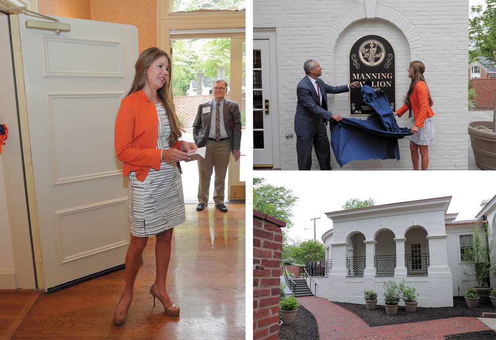 On April 22, Alumni Hall unveiled its new 1,600-square-foot addition, with the help of Ashley Manning (Com class of ’97). Manning talked about her love for all things UVA and the importance of being a member of a team. “The UVA Alumni Association is one of the greatest teams I’ve been a part of in my life. I’m thrilled that this pavilion will help current and future students, and ensure the greatness of our wonderful University. This pavilion is a win,” said Manning, a member of the Alumni Association’s Board of Managers. The addition, called Manning Pavilion, was designed by Jim Boyd (Arch class of ’75), Carmine Cafiero (Arch class of ’10) and Aaron Compton of Grimm and Parker, and will be used primarily as a meeting place for students, but will also support internal and external events, such as weddings.