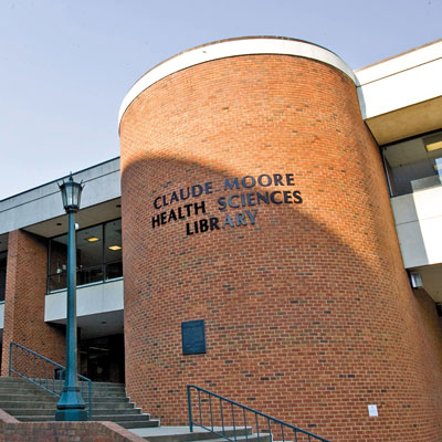 The Claude Moore Health Sciences Library, which stretches above Jefferson Park Avenue, serves students and faculty in the Schools of Medicine and Nursing.