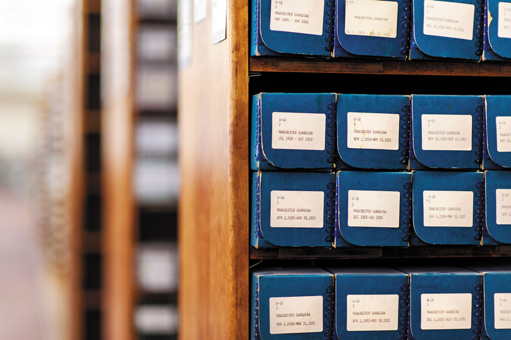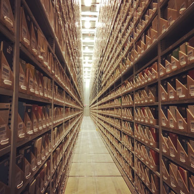 This high-density shelving facility on Ivy Road organizes its books by height rather than the Library of Congress classification, in order to save the most space.