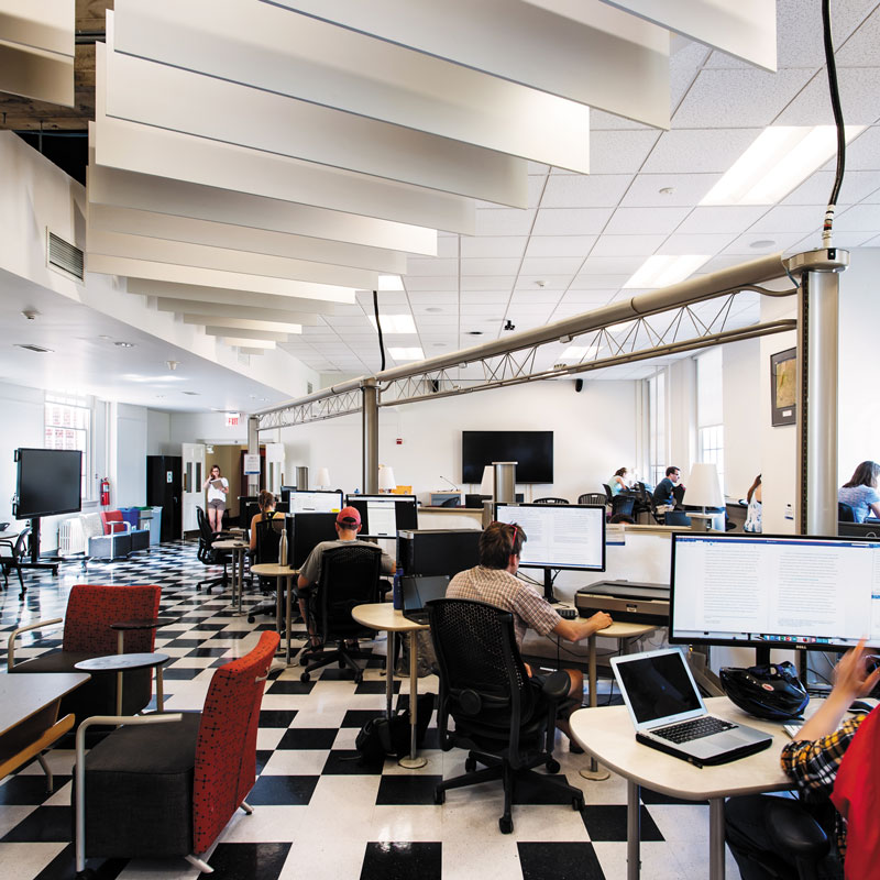 “For many students, the library is the place they go when they want to get work done,” says Donna Tolson, the library’s senior director of administration and planning. “I hesitate to use the word ‘religious,’” she says about the students’ relationships to the library’s rooms, “but it’s the way they organize their effort. And we have made space for them to do that.”