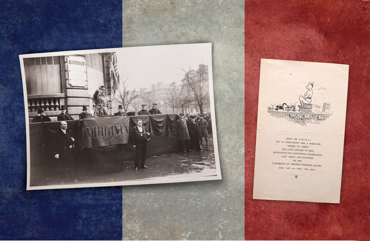 The “War to End All Wars” had fired its last shot four months earlier. University alumni and students who had served “over there” would be returning to America just in time for the start of Prohibition. What better time to throw a party? What better place than gay Paree? What better occasion than the 100th anniversary of the founding of UVA?