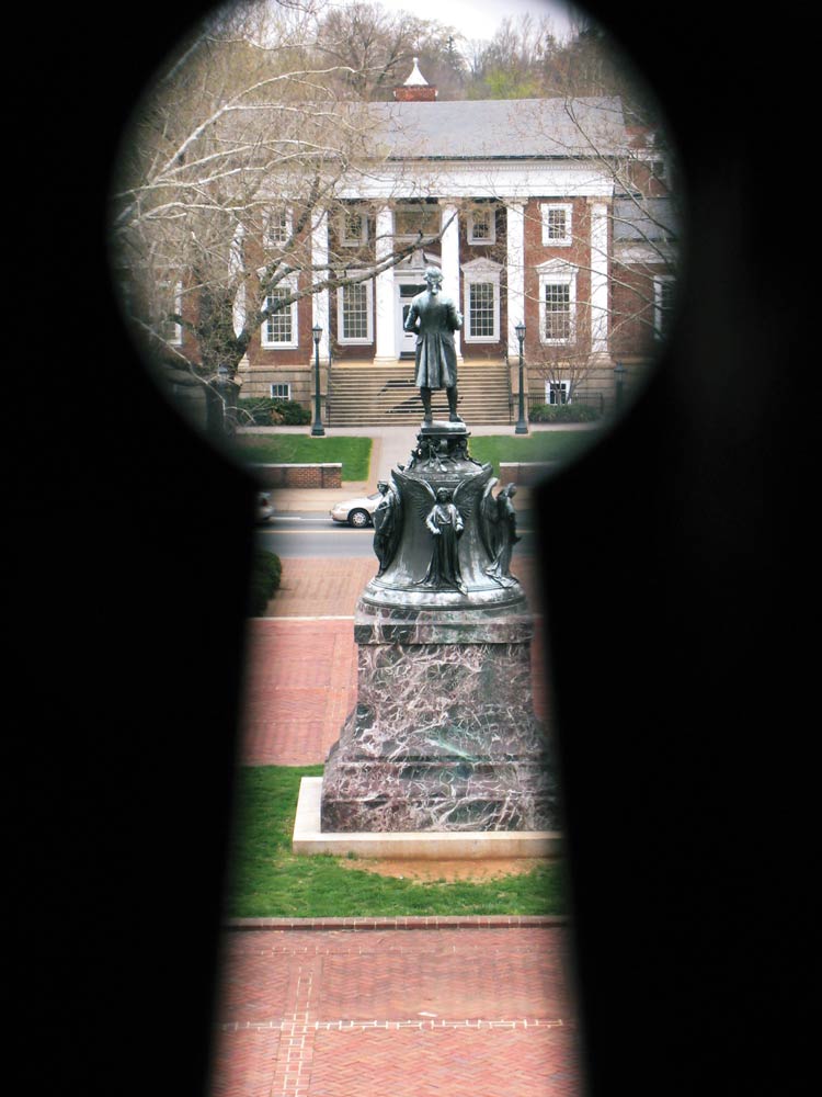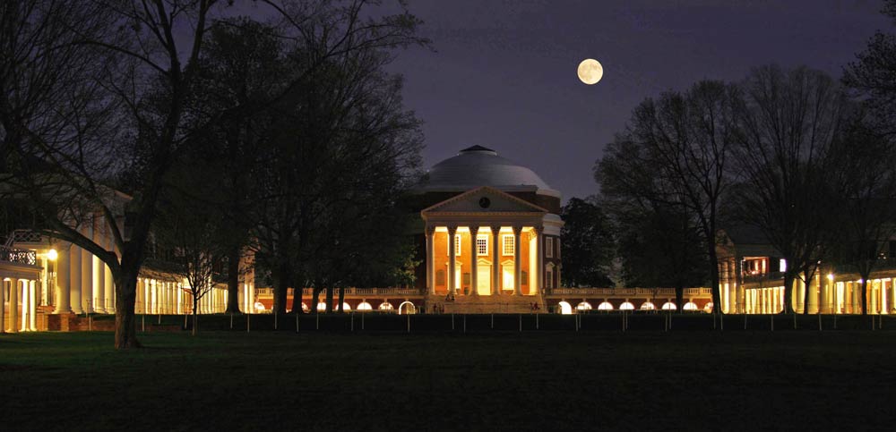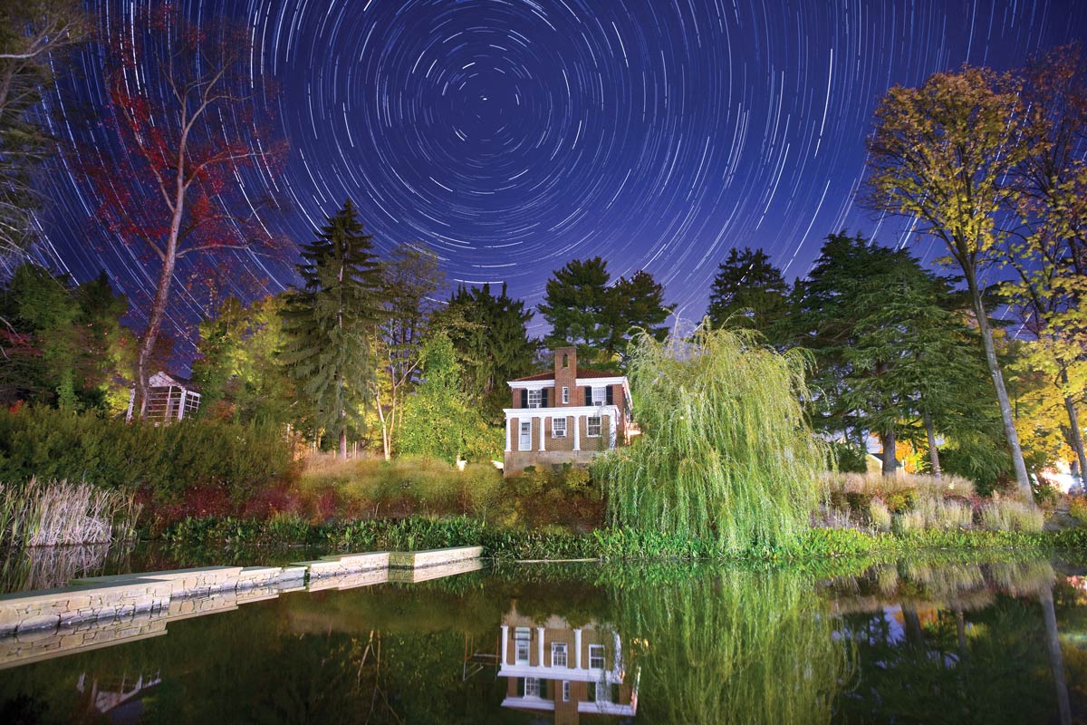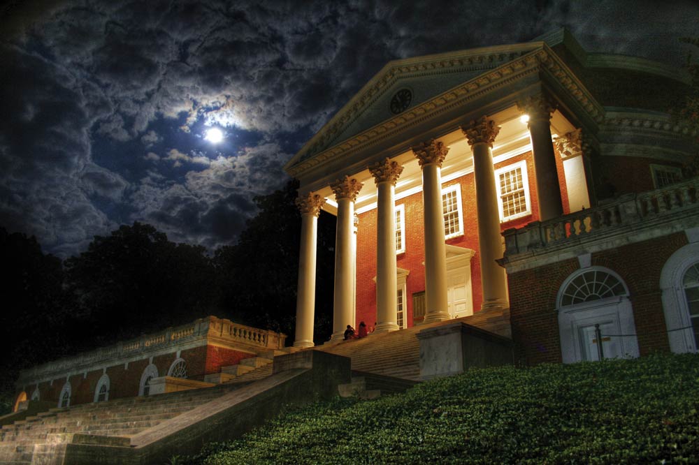 The pond near the Curry School is one of Sean Peach’s favorite places on Grounds because he says it “has become a place where students meet, where friendships grow and couples find comfort in each other.” The star trails in the night sky resulted from the earth’s rotation during the hour of combined exposure that produced this picture, taken with a Canon 5D. “I decided to try to picture the pond at night because that usually brings out more vivid colors than what we can see with our eyes,” says Peach, who is currently pursuing an M.D./Ph.D. at UVA. “I almost gave up on the shot because it got extremely cold that night and my toes toward the end were freezing. But once I got home and viewed it on the computer, it was well worth it.”