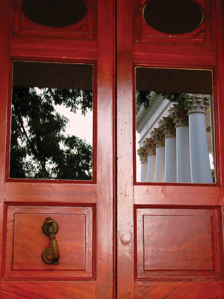 While taking photos with his Nikon D50 during an early morning last fall, Garner says he was suddenly taken by the red row of trees beside the brick path to the Corner, framed between the pillars. “I had never seen the pillars like this before,” says Garner, who is majoring in English and religion. “It is hard to believe things we look at every day can be so much more if we see them under the right light.”