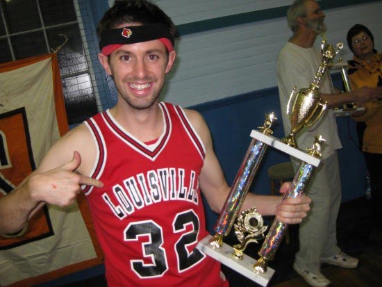 In the final round, Glasser’s competition included six other men and an 11-year-old boy. “That kid was a sick player,” says Glasser. “At first, I thought I’d take it easy on him because he was a little kid, but then he’d give me a slicey hit with backspin on it. He was so close to ground, he’d hit the ball and I couldn’t touch it. He made me look foolish. Of course, the advantage we had over him was that we could slam the ball over his head. But when you do that in front of a crowd of 200 people, you feel like a jerk.”