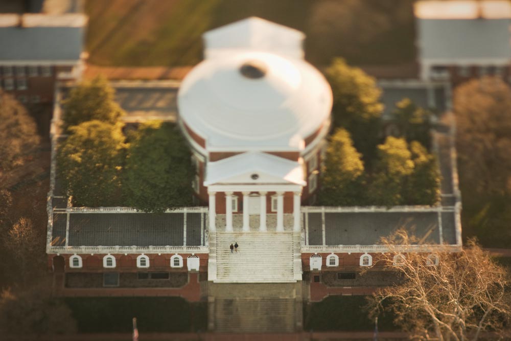 As plans for the University of Virginia began to take shape in Thomas Jefferson’s imagination, he envisioned a lawn surrounded on three sides by housing for students and professors, connected by covered walkways. The arrangement, he wrote, would form “an academical village, instead of a large & common den of noise, of filth, & of fetid air.” It’s been 192 years since the cornerstone was laid for Pavilion VII, the first of the Lawn’s complex of buildings, and it’s fair to say that Mr. Jefferson’s creation has been a resounding success. The American Institute of Architects recognized the Academical Village in 1976 as the nation’s proudest architectural achievement in its first 200 years. Additionally, the Academical Village—grouped together with Monticello—is one of only four man-made structures in the United States to be named a World Heritage Site.