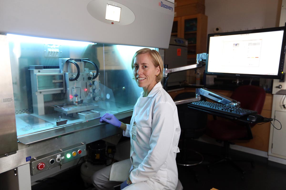 ONE OF THE UNIVERSITY’S GOALS in purchasing the printers was increased collaboration across several disciplines. That has already happened. Peirce-Cottler’s and Brayman’s labs meet every other week to discuss their progress. They’re also working on projects with the department of orthopedics and the department of surgery.