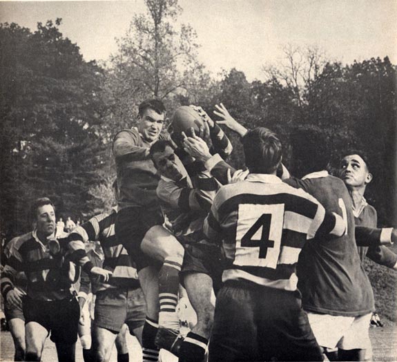 On Sunday afternoons in the fall and spring, one of the things to do, especially with one’s date, is to go down to the field behind Memorial Gymnasium, sit on the bank, and watch a group of young men in uniforms with striped shirts play a game called rugby.