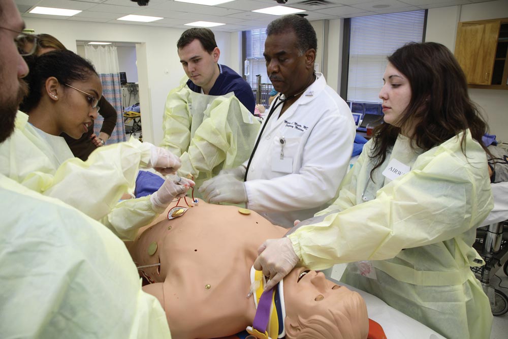 The workshops, a local example of a widening trend of simulation in medical education, give students a chance to solidify their learning in a way that’s not possible sitting behind a desk. “The cognitive aspects of patient care are improved,” says Marcus Martin, chairman of UVA’s Department of Emergency Medicine. “They have to think through the process of why the vital signs are abnormal and how to manage them through medical procedures.”