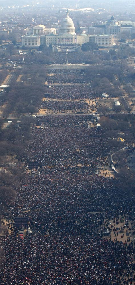 After waking before dawn, my friends and I mummified ourselves with scarves and long underwear and prepared for the frigid walk to Capitol Hill, where we would have prime seating at the base of the Capitol, right in front of the Ulysses S. Grant memorial. Every street within a five-mile radius had been shut down, including two major highways linking D.C. to Virginia. Squads of National Guard troops occupied every city block along the way, with one staff sergeant waving us through each intersection, making the walk easy, if not slightly unsettling. Here was a city under a de facto state of martial law.