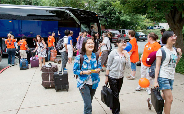 The UVA Express shuttles incoming international students from nearby airports to Grounds. More than 100 volunteers greet students from places like China, Turkey and France and help them get settled in Charlottesville. International students comprise 7 percent of the Class of 2015.