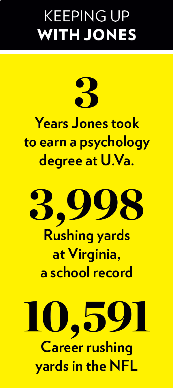 While he hasn’t been back to Grounds in several years, Jones says Charlottesville was his most influential home. “I have more fond memories of Charlottesville than from anywhere, whether it be the NFL, where my acting has taken me, etc.,” Jones says. “UVA was the start of the evolution process for me. There’s something special about Charlottesville.”