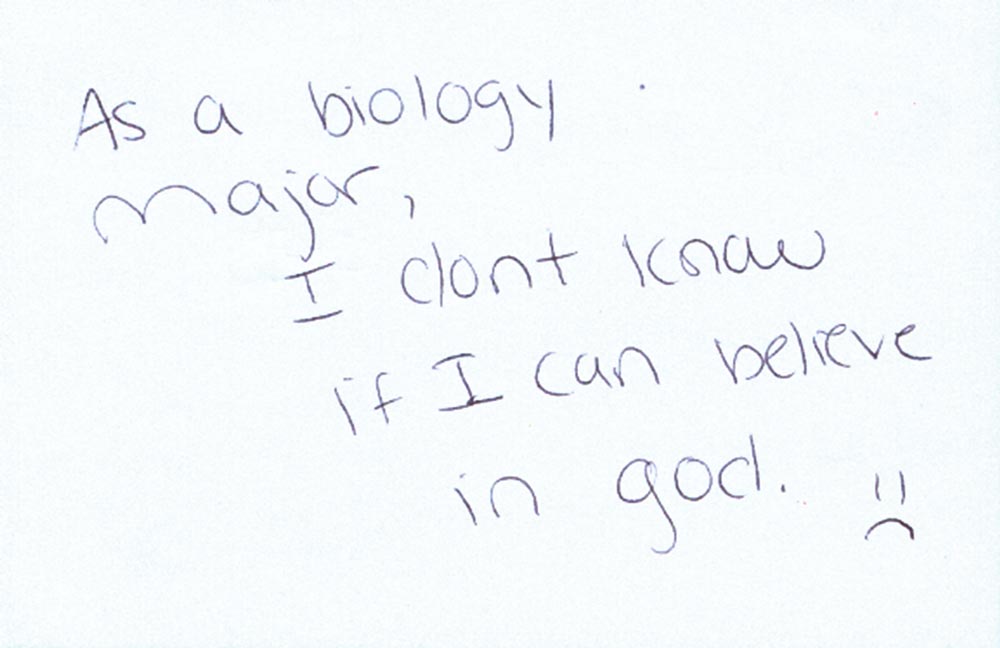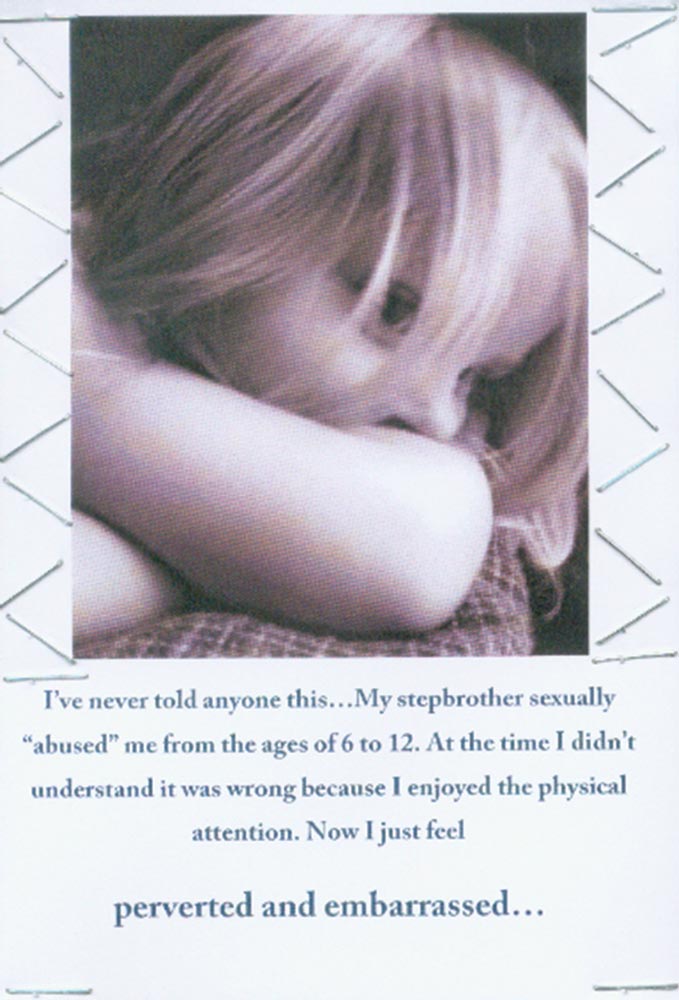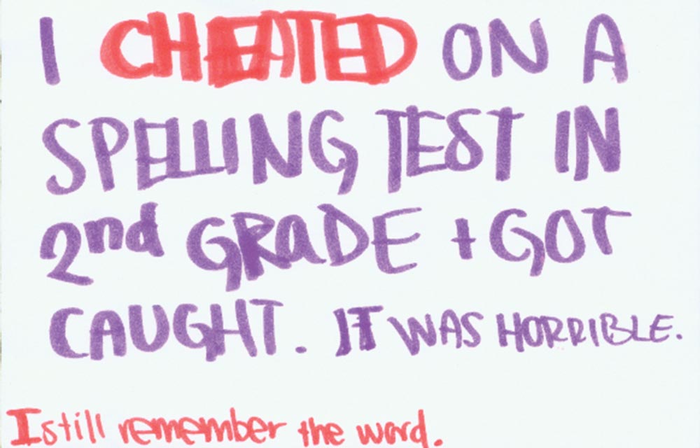 “The exhibit serves as a forum for students to share their deepest, darkest secret with the world, without telling anyone at all,” says Mallow. “People are able to connect anonymously and realize that other people may be feeling the same way they do.”