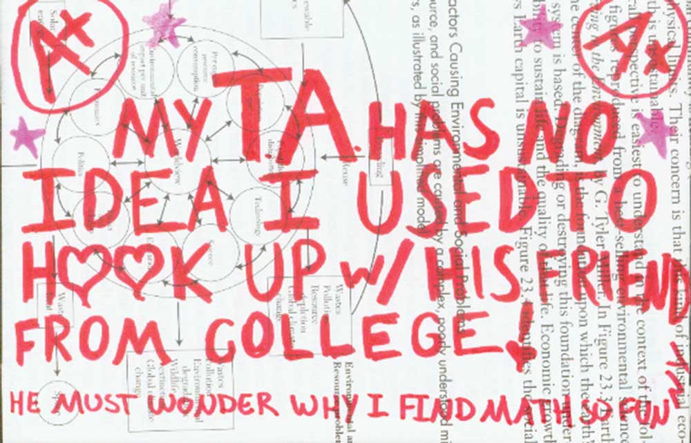 The project caught the attention of two students, Courtney Mallow (Col class of ’10) and James Burney (Col class of ’09), who are the co-directors of the Arts & Enrichment Committee, a part of the University Programs Council. After inviting Warren to visit the University, they solicited secrets from their fellow students and created an exhibit of the cards they’d collected to coincide with his appearance.