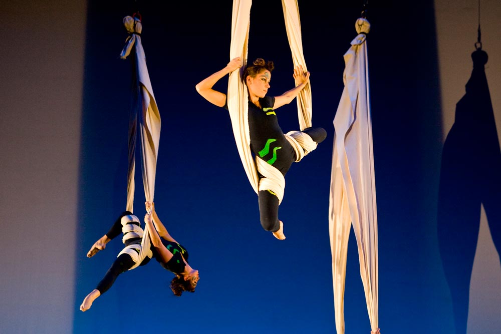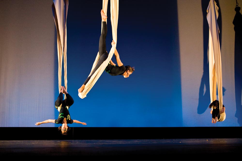 Aerial balletics were on display in one of the many arrestingly choreographed pieces in “Strands in Motion,” a fall dance concert that showcased original work by both faculty and students.
